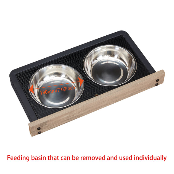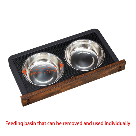 Adjustable raised dog feeder, comes with 2 stainless steel 7-inch dog food bowls and adjustable position (outside or inside of the dog crate) to adapt to the different eating needs of dogs.