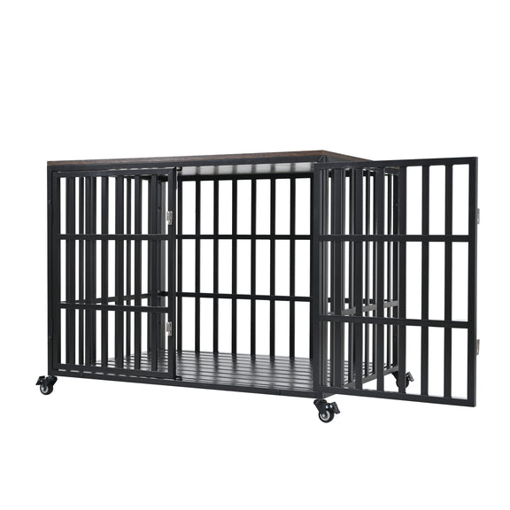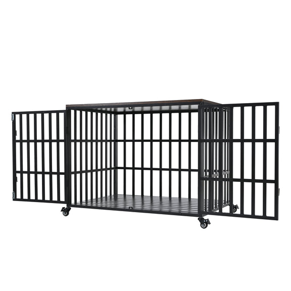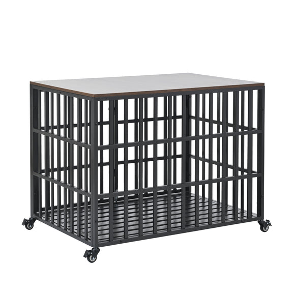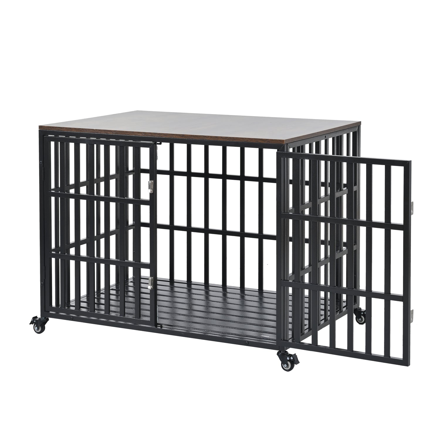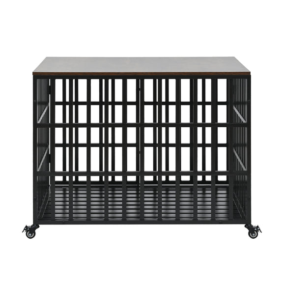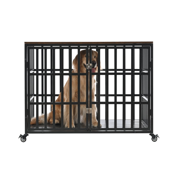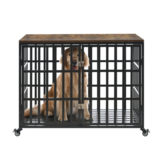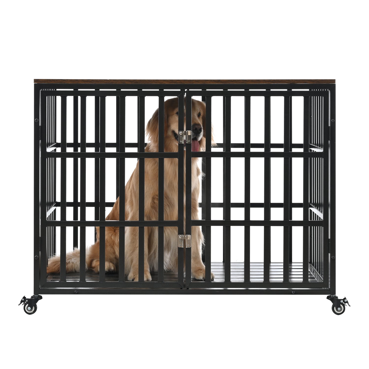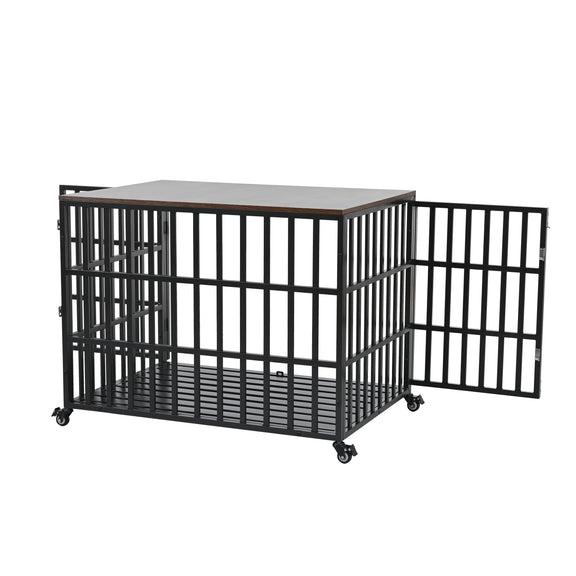 - 【Safety Guaranteed & Mobility 】 Two sturdy latches to prevent the high anxiety dogs from escaping their crates. Thanks to the 4 universal wheels with brakes, you can move the dog kennel from indoor to outdoor easily and keep it stay in place.