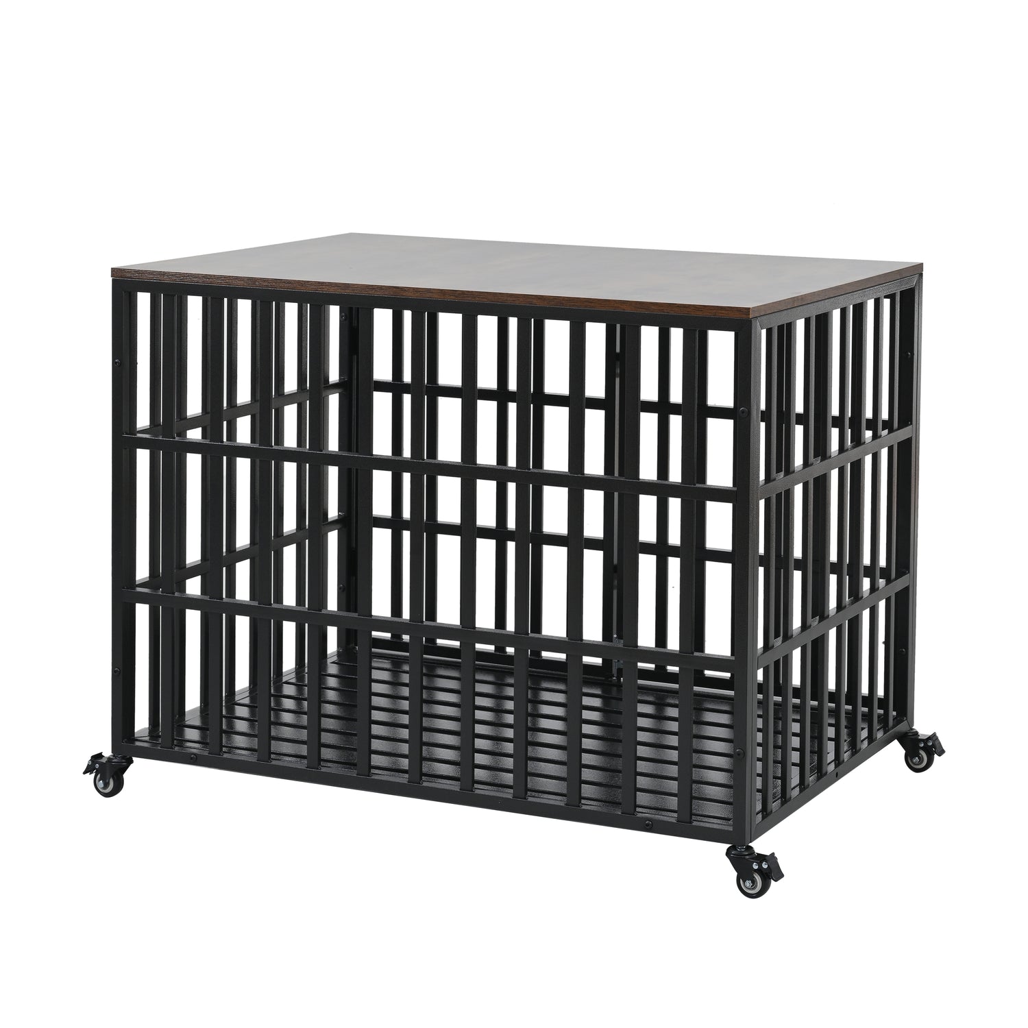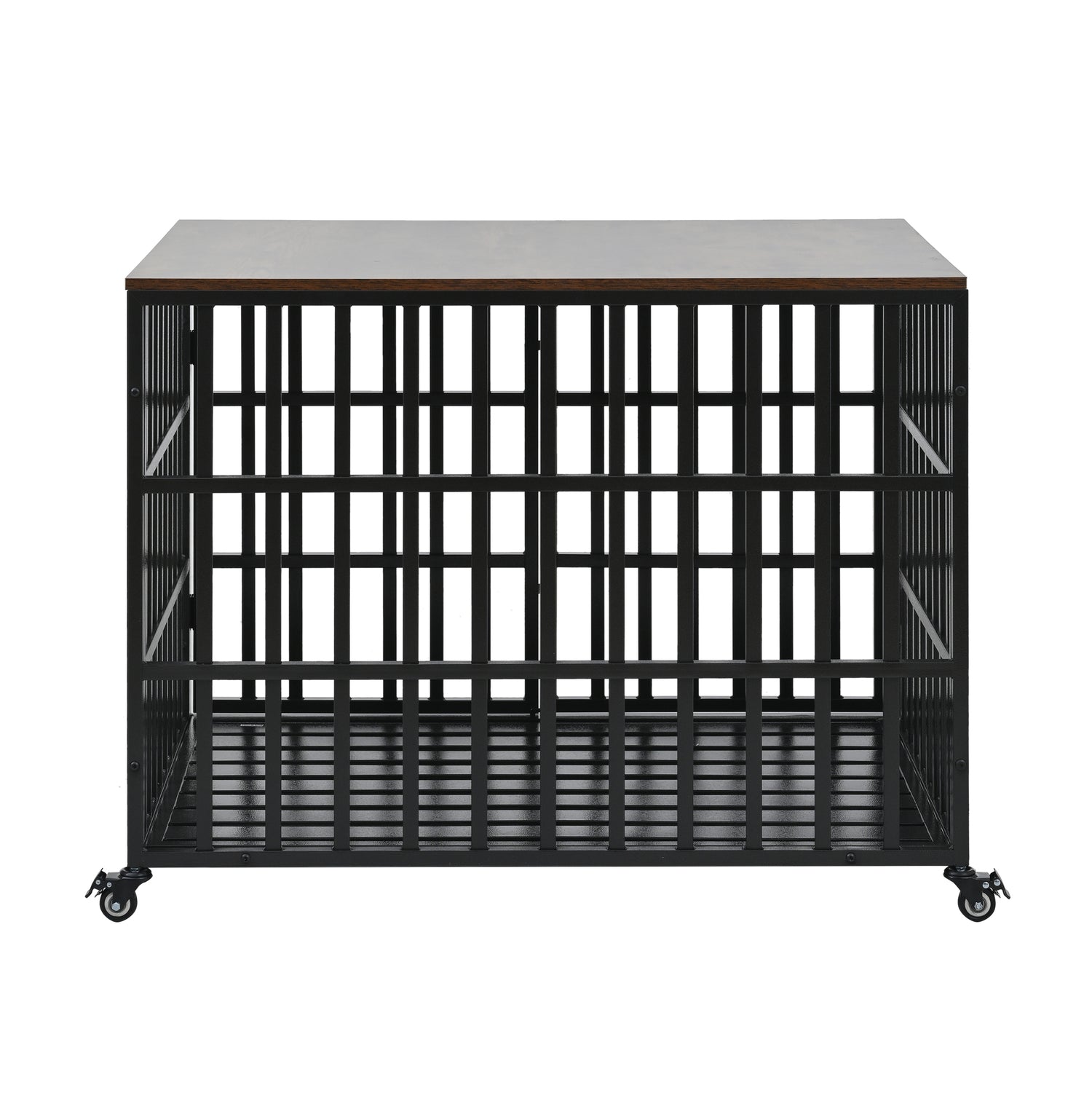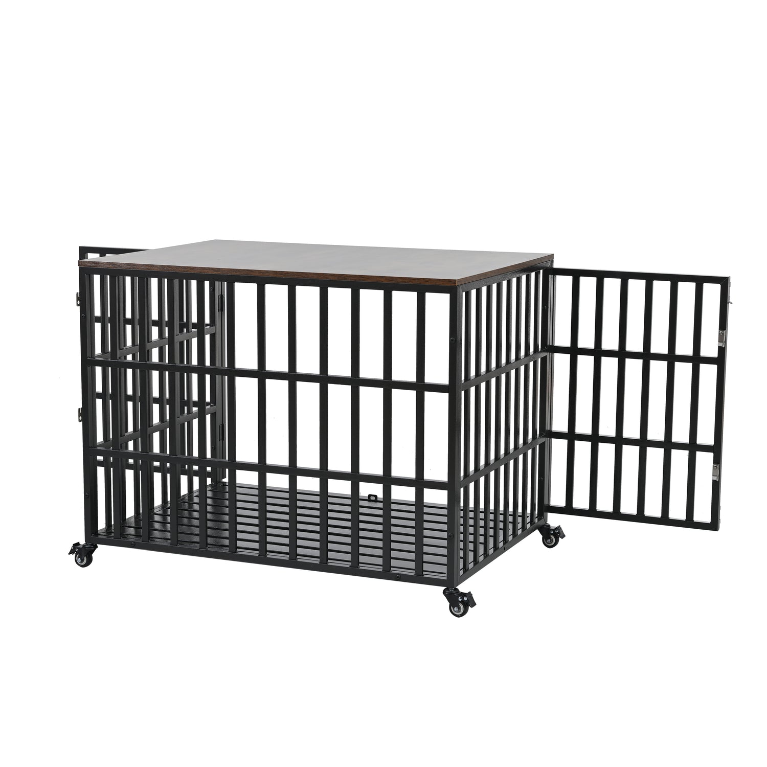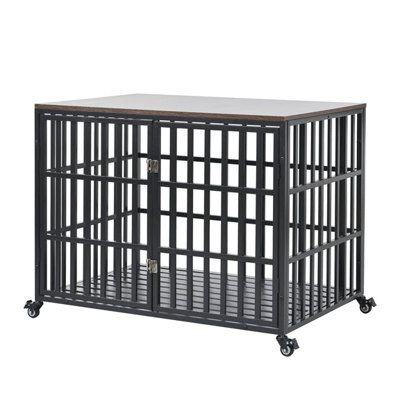 42" Heavy Duty Dog Crate for Large Medium Dogs, Furniture Style cage with 4 Lockable Wheels and 2 Locks, Decorative Pet House Wooden Cage Kennel Furniture Indoor