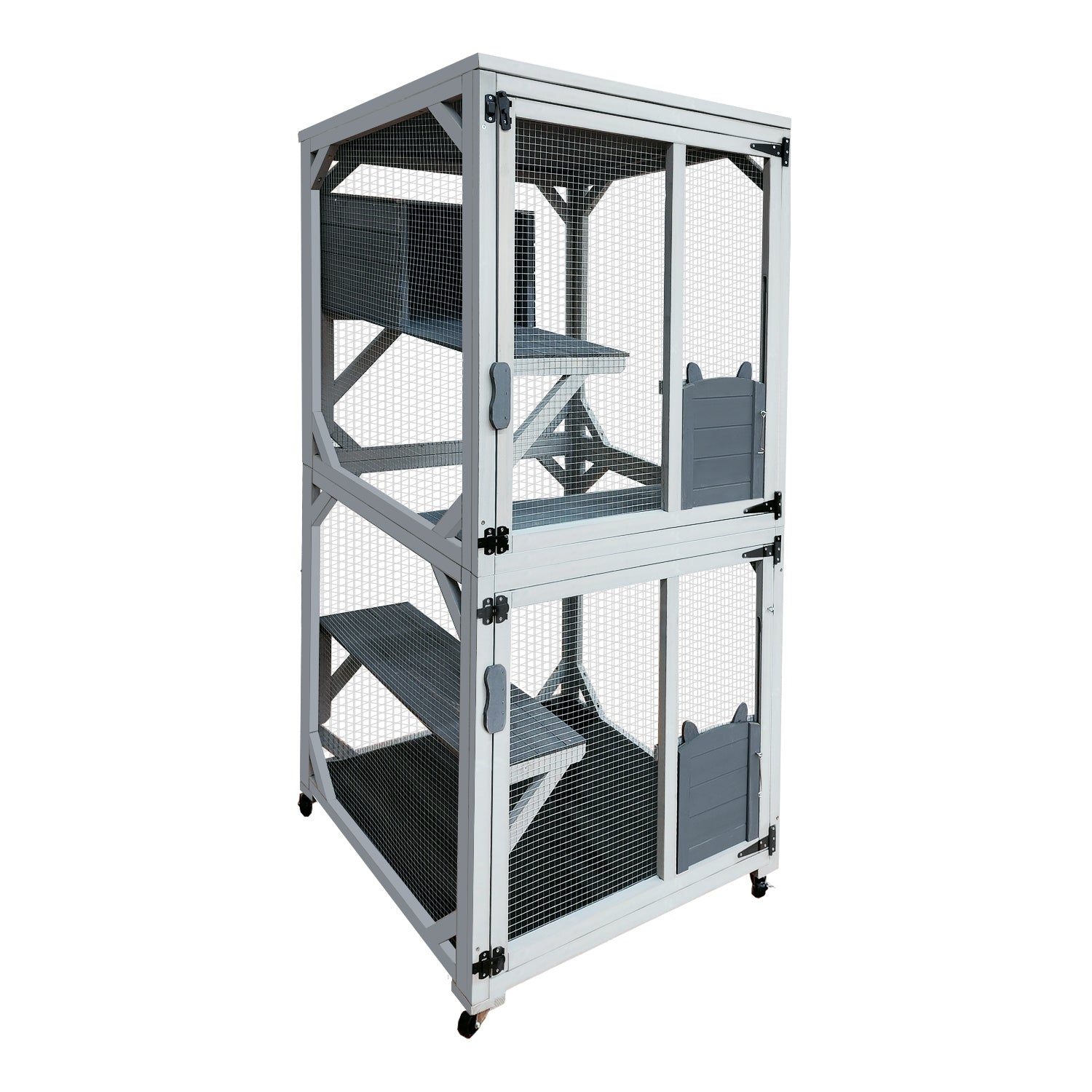 - Durable Construction: Made of solid fir wood with Eco-friendly water-based painting and supported by strong triangle brackets. Moreover, with a waterproof and sun-proof sloping asphalt roof, the cat cage can protect your pets from any bad weather.